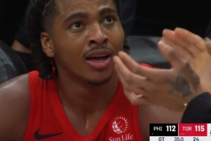 布伦森胯下运球时自己扭到右脚 本场比赛不会回归!