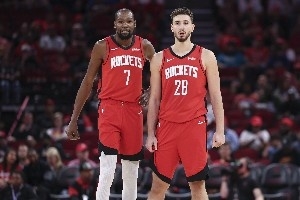 凯文·杜兰特为火箭倾其所有,展现了一名超级巨星的全部价值。他出场近40分钟,18投9中得到23分,命中4记三分,外加6次助攻。每当球队进攻陷入停滞,球最终都会回到杜兰特手中,而他也往往能凭借个人能力打破僵局。杜兰特没有选择不合理的强行出手,也无意为了数据而刷分——他仅仅是在苦苦支撑,试图避免球队的进攻体系彻底崩盘。
