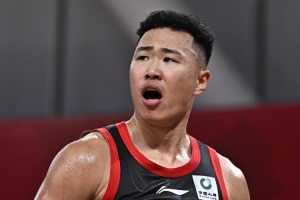 上海久事大鲨鱼球员王哲林以单场3次封盖的数据领跑盖帽榜;