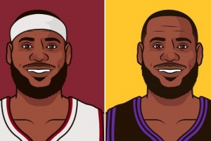 赛后,美国数据媒体StatMuse对比了热火时期詹姆斯和41岁后詹姆斯的数据。