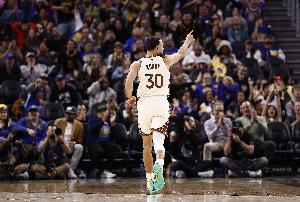 算上这5记三分,库里本赛季三分命中数来到154记,反超米切尔(153记),重回榜首。