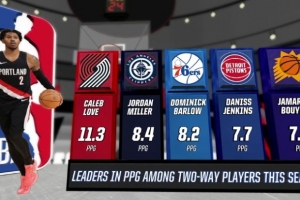 开拓者主场迎战猛龙,转播方给出一项数据统计,本赛季双向合同球员场均得分前五: