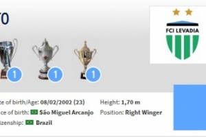 若昂·佩德罗现年23岁,主要司职右边锋,2023年加盟塔林利瓦迪亚队,一共为球队出战89次,贡献22球17次助攻,德转当前身价32.5万欧。