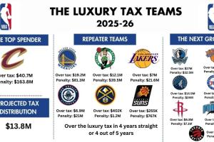 体育资讯02月01日讯 ESPN知名薪资专家Bobby Marks更新动态,晒出一张2025-26赛季NBA球队奢侈税情况。