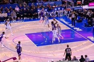 有点小情绪!瓦兰被吹进攻犯规抱着球 布泽利斯多次拿球都不肯给