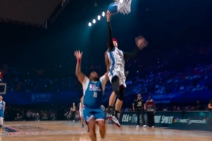 一出手就有!杨瀚森面对克林根45度三分命中!