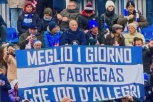 体育资讯2月16日讯 在科莫1-2输给佛罗伦萨的意甲联赛中,科莫球迷在看台拉横幅支持法布雷加斯,并嘲讽阿莱格里。