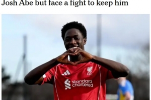 利物浦U18教练西蒙·怀尔斯在阿贝最近对阵德比郡梅开二度后告诉Redmen TV:“你可以看到他随着自信心和他的天赋在成长,他有一种真正的诀窍,能够内切并射门得分。他是一位真正的天才,与他共事非常令人兴奋。乔希现在的状态非常好。”