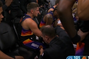 唐斯凶狠扑球 一屁股坐到泰特右膝致后者受伤 被队友搀扶离场