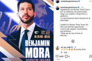 体育资讯1月4日讯 正式出任三镇主帅职务后,本杰明·莫拉更新社媒,谈到了自己来到三镇执教的感受。