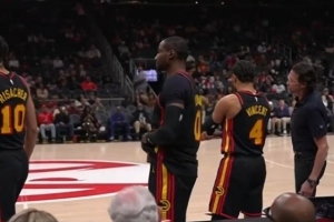 潇洒!詹姆斯空位三分一箭穿心 替补席集体起立欢庆