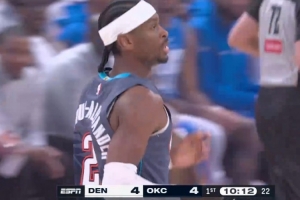 没上场也很有参与感!约翰逊钉板大帽华莱士 掘金替补席吃T